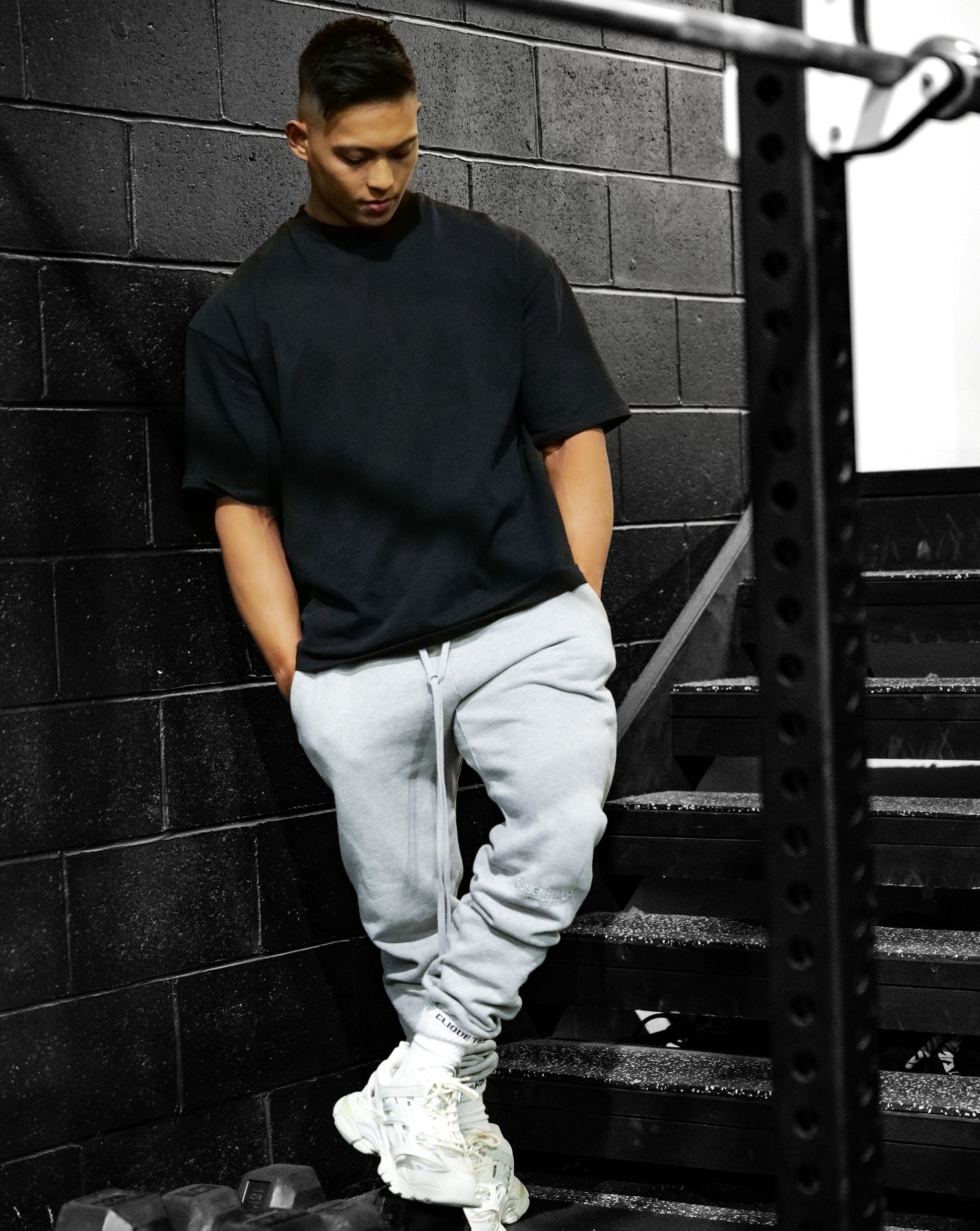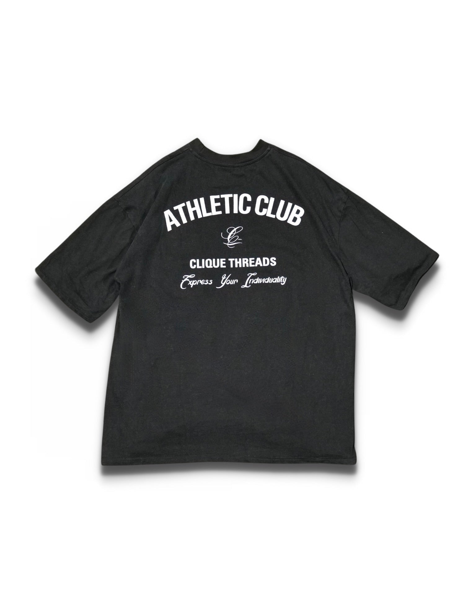 This tee is created to be a boxy silhouette that is cut from a 230gsm brushed cotton that holds a beautiful drape along any body. This shirt features a direct to garment print "Athletic Club" logo on the back.