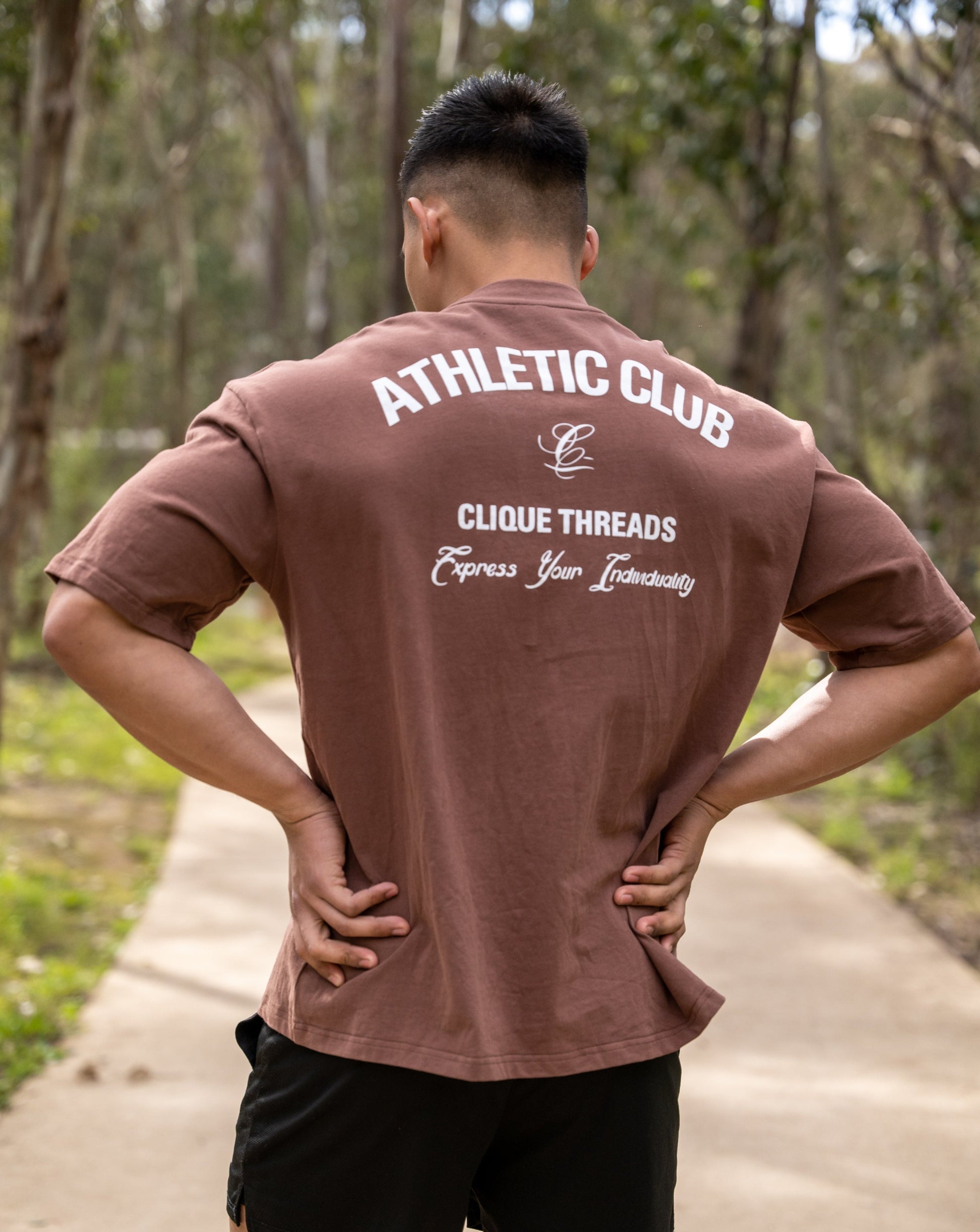 This tee is created to be a boxy silhouette that is cut from a 230gsm brushed cotton that holds a beautiful drape along any body. This shirt features a direct to garment print "Athletic Club" logo on the back.